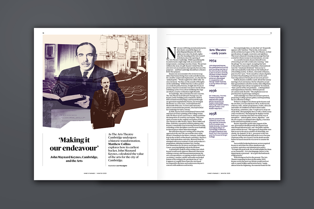 Smith recently won a 3-way pitch to redesign King's Parade – the alumni magazine for King's College, Cambridge. Smith's presentation proposed a restyling that would bring the magazine's look more inline with the college's new visual identity. It also featured the adoption of a wider, A4+ format for the magazine, enabling a more varied use of the grid, a new restyled masthead, and a simpler, cleaner typographic approach. Printed by the Lavenham Press, the new look magazine has just been published and distributed to alumni. The print version is accompanied by a new online Shorthand edition.