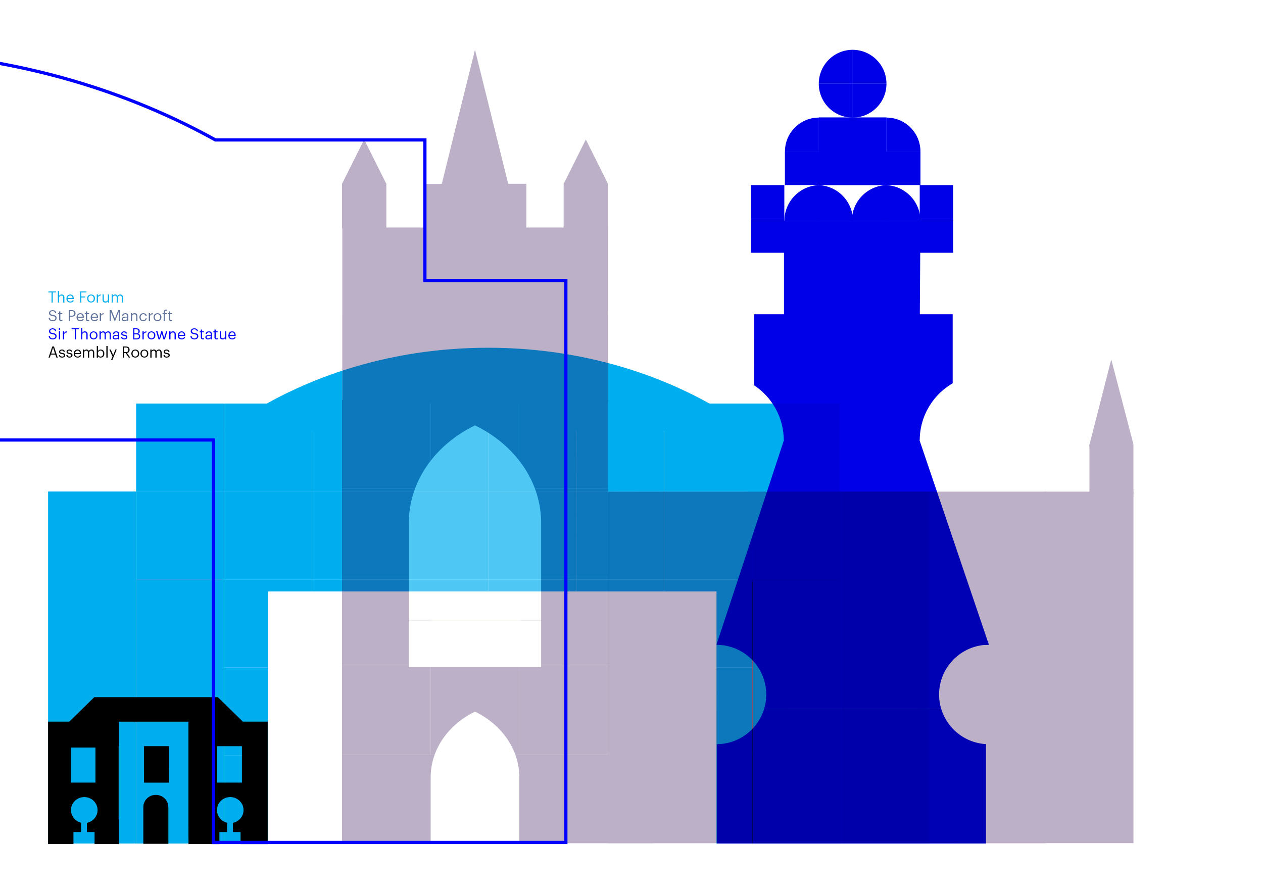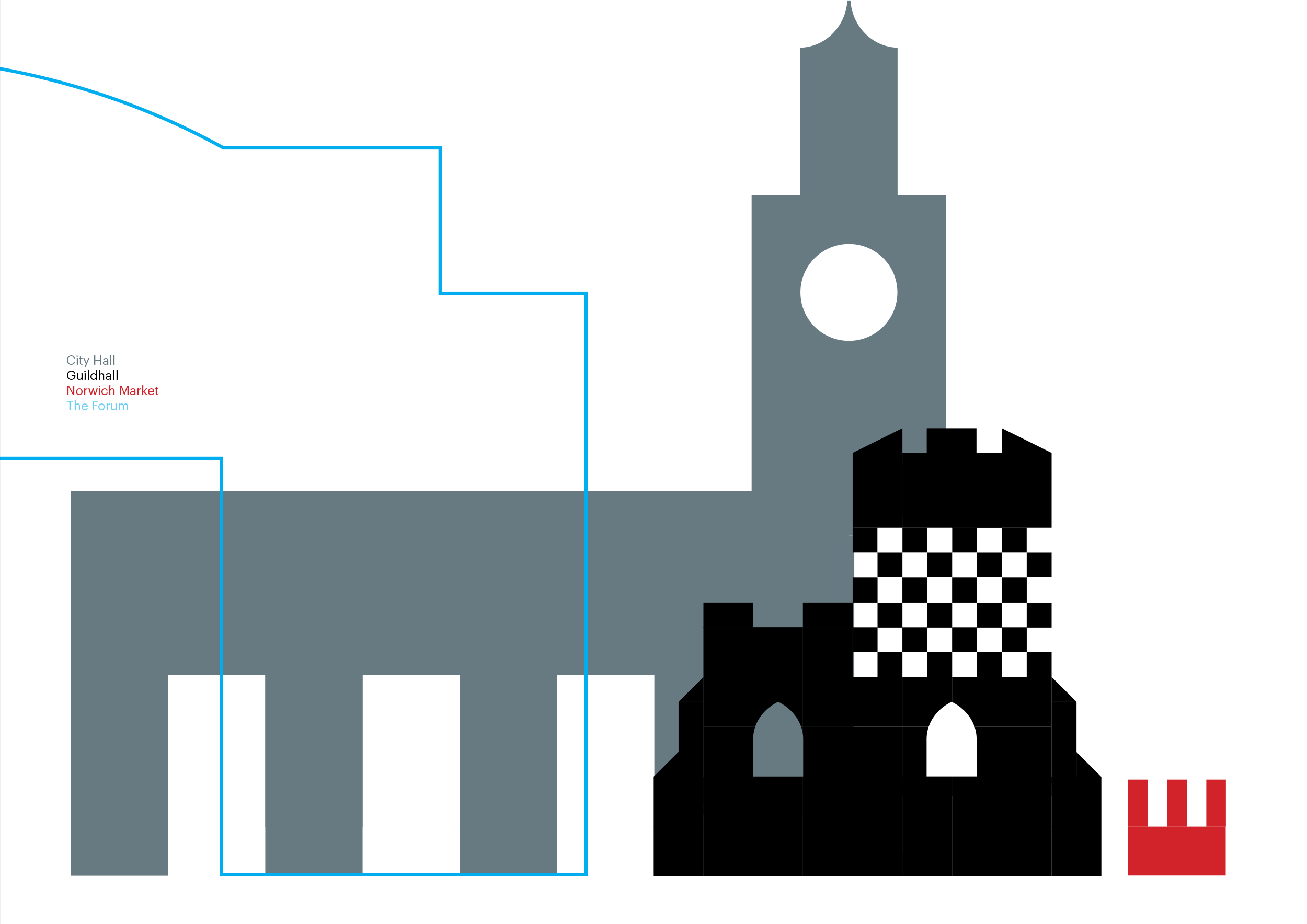 The design of a suite of icons showing Norwich's most prominant buildings.