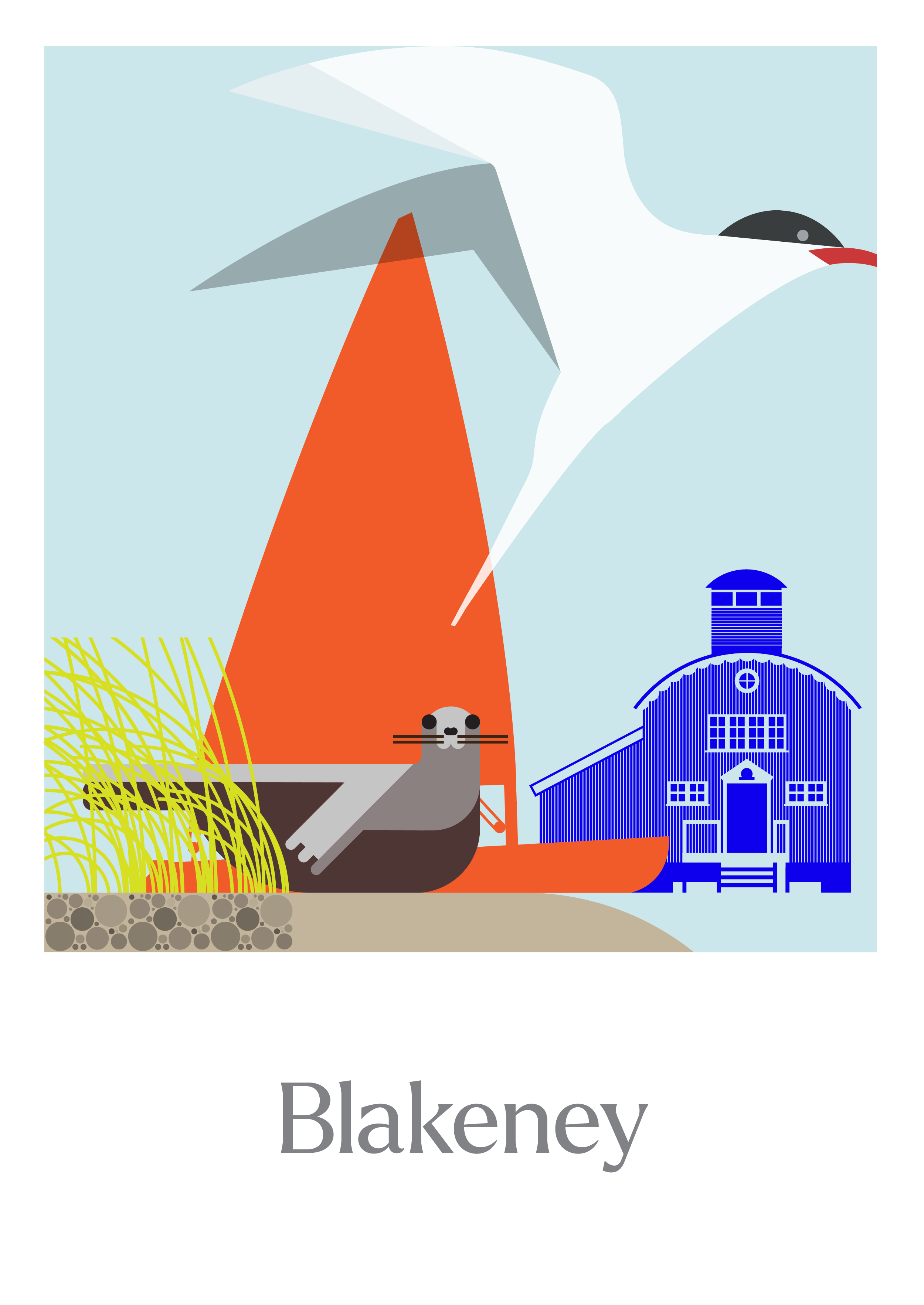 Blakeney Poster Work in progress project: a travel-style poster illustration capturing the vital elements of the North Norfolk seaside viallge. +