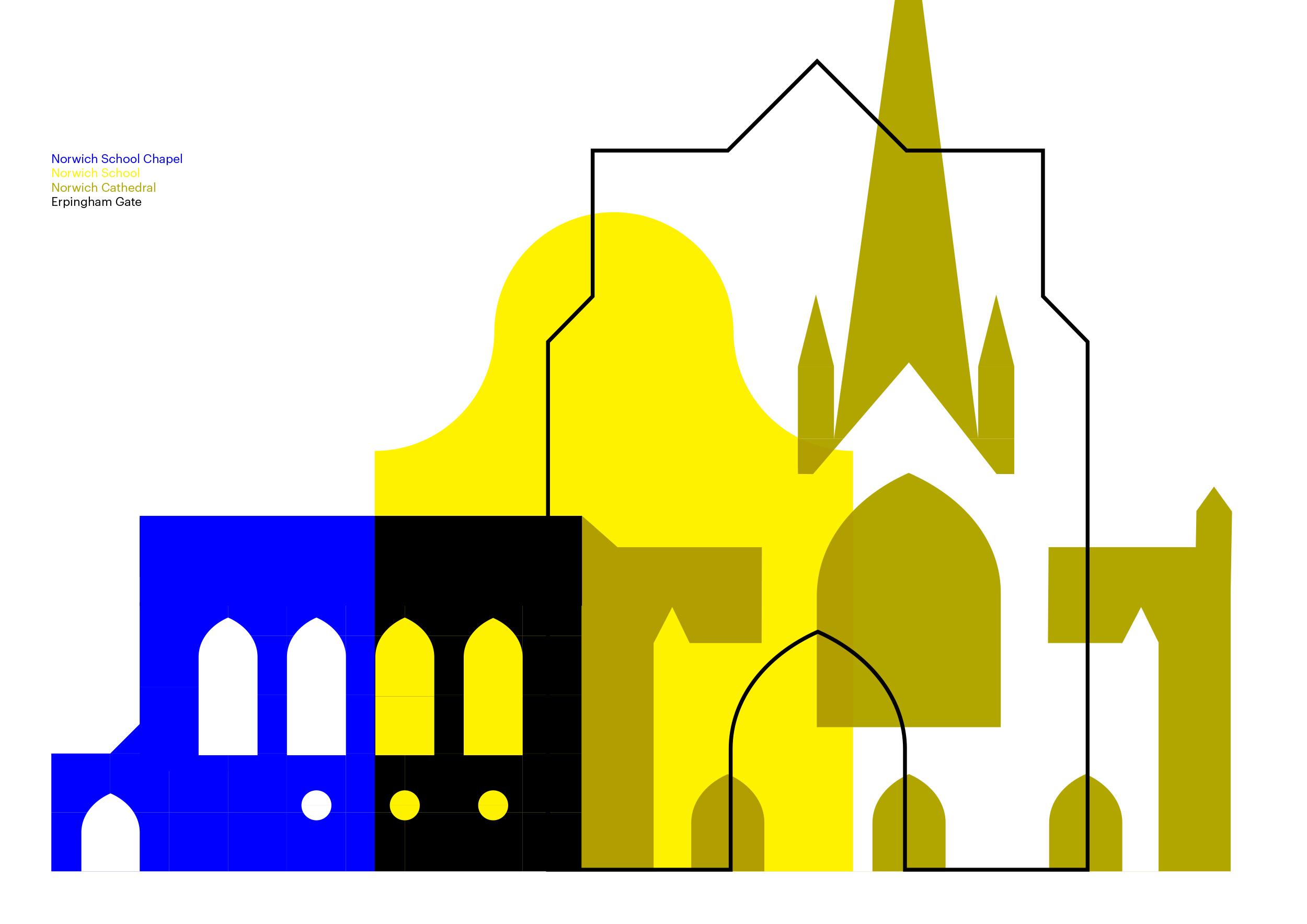 The design of a suite of icons showing Norwich's most prominant buildings.